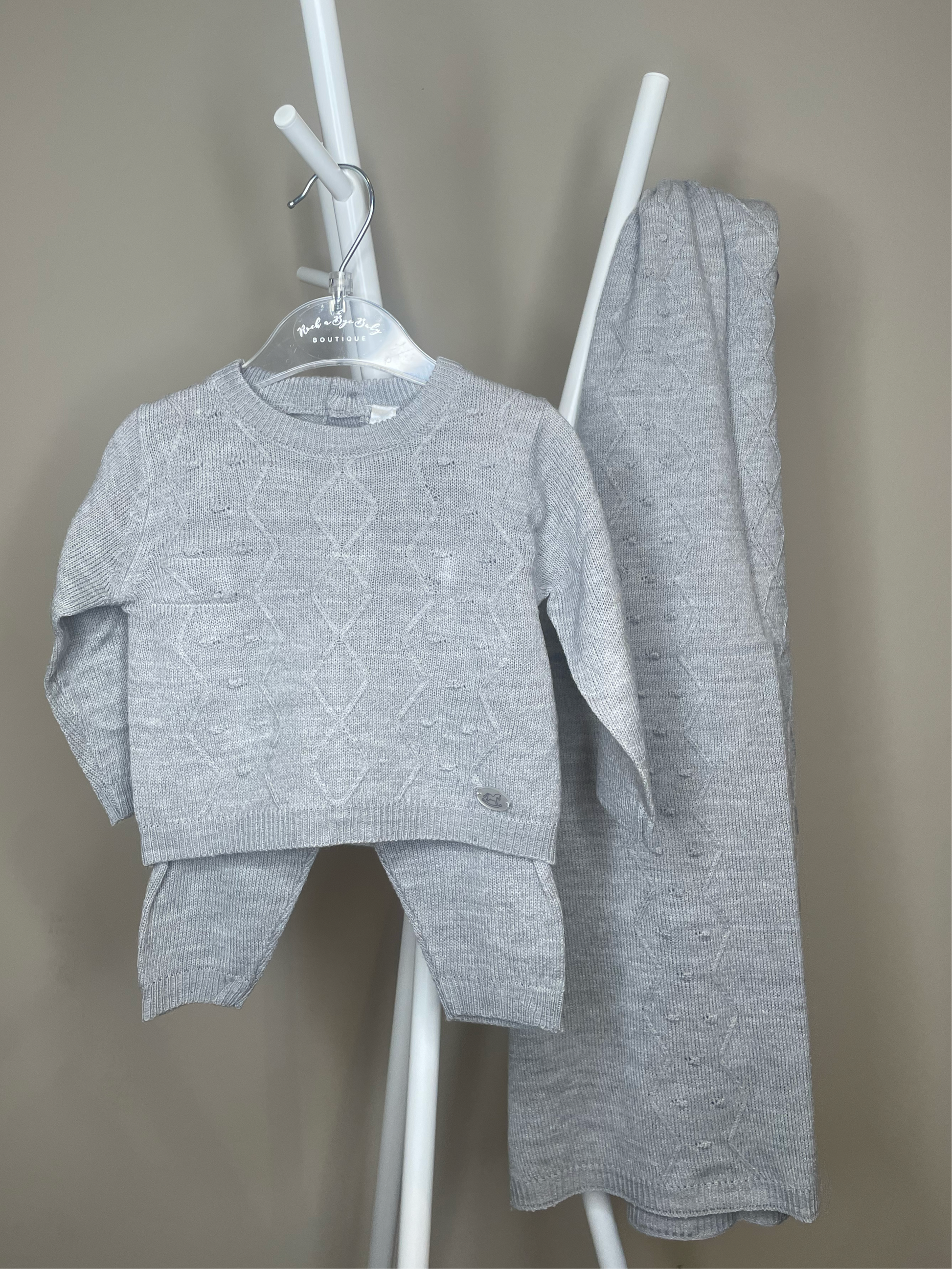 Grey Knit 3 Piece Set with Shawl
