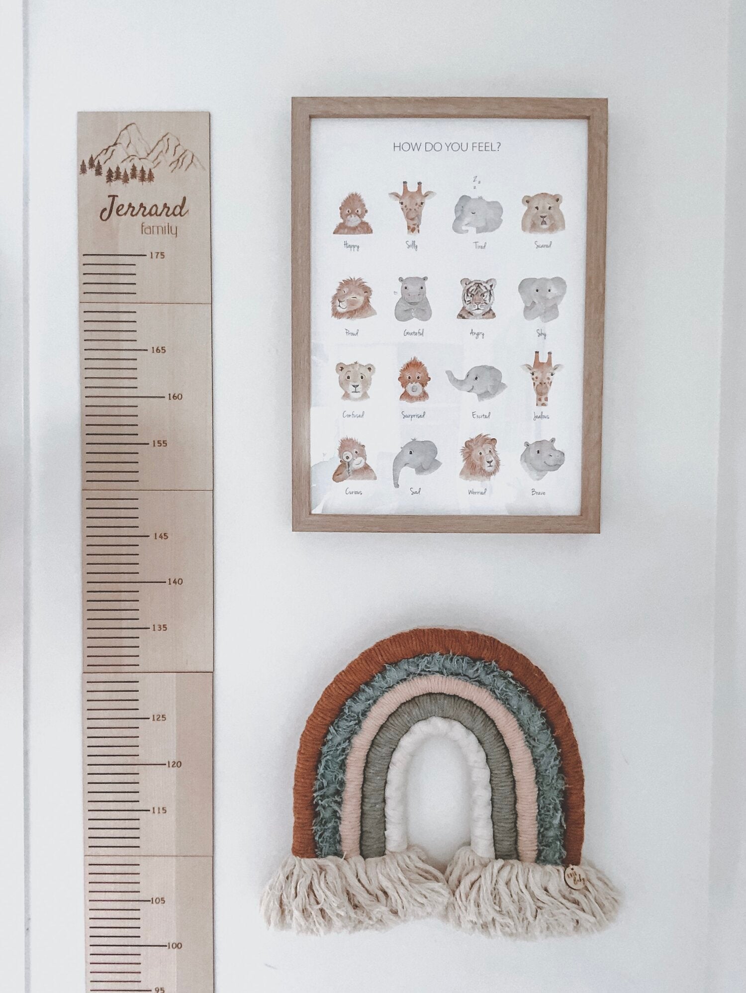 A ‘feelings’ print that fits with any colour interior, using a whole family of hand painted animal faces to represent both happy and sad (because these matter too), helping encourage positive expression and understanding for the way children feel and behave.